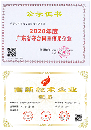 艾索先后通過國家高新技術企業、創新型中小企業、專精特新中小企業、兩化融合管理體系A級、軟件服務商交付能力等級、廣東省守合同重信用企業等企業資質認定,獲得質量管理體系、環境管理體系、職業健康安全管理體系、信息技術服務管理體系、信息安全管理體系等國際認證,以及知識產權管理體系、商品十星售后服務評價體系、企業誠信管理體系、4A級標準化等級評價體系、綠色供應鏈管理體系、業務連續性管理體系等國家認證。